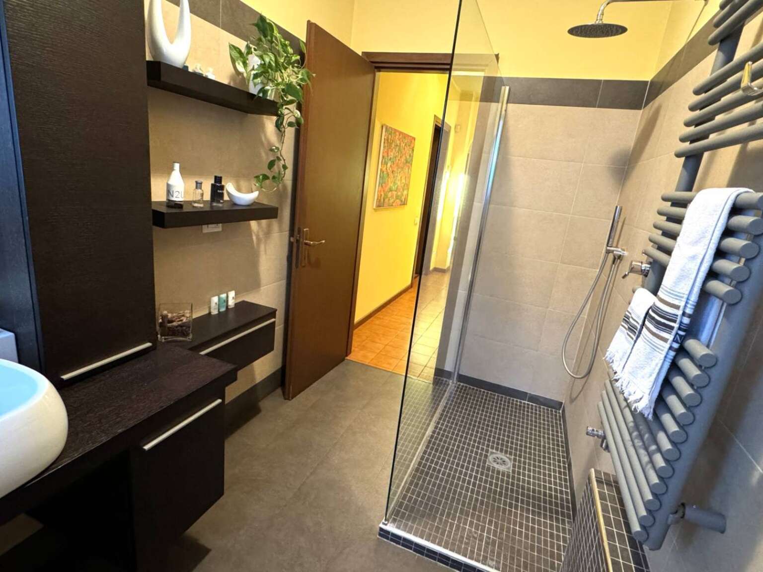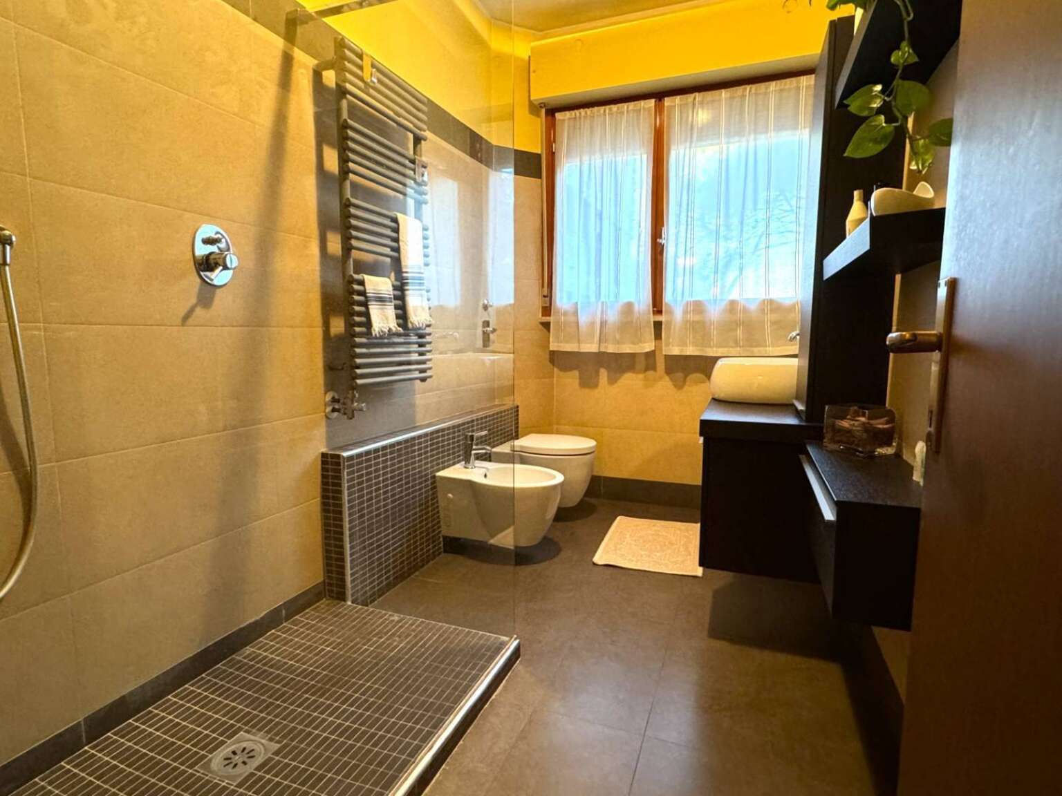 Pavimento in ceramica, vasca idromassaggio, box doccia 120×80, sanitari IdealHot, rubinetteria MaxBath